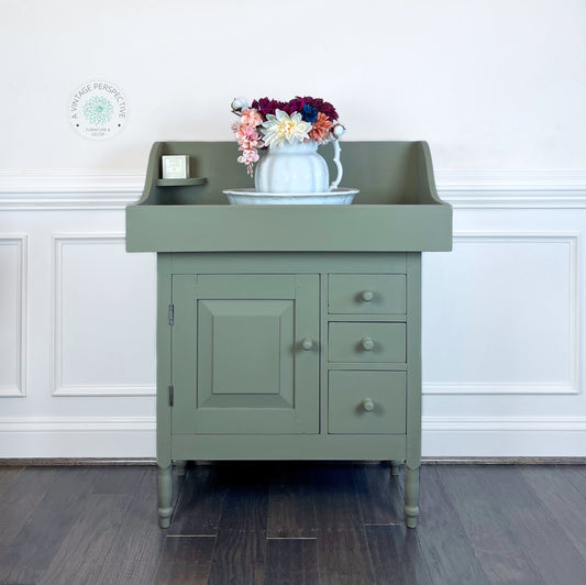 Sage Green Vintage Washstand | Green Painted Vintage Dry Sink | Farmhouse Cabinet with Storage | Antique Cabinet | Vintage Cabinet